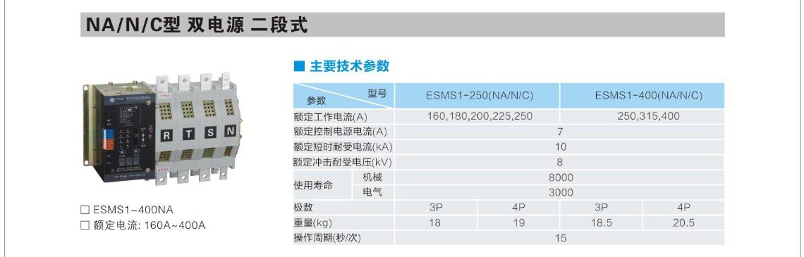 ESMS1-SA/S/LA/L型雙電源自動(dòng)轉(zhuǎn)換開關(guān)